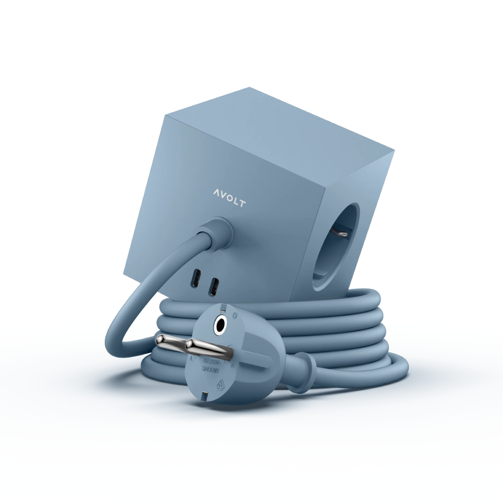 Avolt | Square 1 | Kostka zasilająca 1.8m | 2 x USB C | Shark Blue
